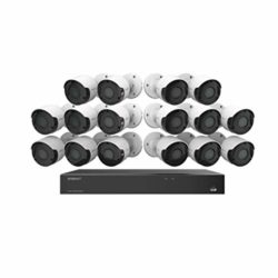 Keep your home secure with the Wisenet SDH-C85105BF Super HD Video Security System, featuring an 16-channel DVR, 16 bullet camera system. The bullet-shaped cameras are designed to withstand harsh