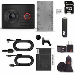 TWO LENSES WORK IN TANDEM This dash camera houses two lenses, each with a 180-degree field of view that records in front of and inside your car, providing complete