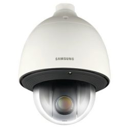 The ivory finish SNP-6320H 2MP Full HD 32x Day/Night Network PTZ Camera from Samsung features a 1/2.8″ progressive scan CMOS sensor and a 4.44 to 142.6mm varifocal lens. It