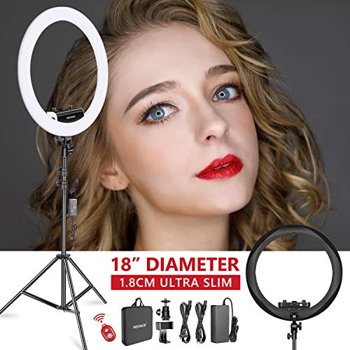 UPGRADED NEEWER RING LIGHT: Black Appearance, Ultra slim with 1.8cm thickness makes it more lightweight, portable and elegant; Perfect for photography, videography and makeup tutorials, offering more diffused lighting around the subject while reducing the appearance of harsh shadows