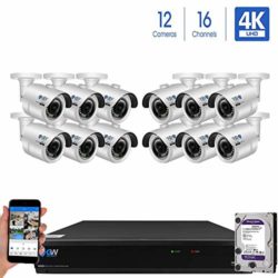 ONWOTE 16 Channel 4K Ultra HD NVR PoE Security Camera System with Audio, 3TB HDD, H.265 Onvif, 8 Outdoor 5MP 2592x1944P HD IP Cameras, 100ft Night, Remote Home Monitoring