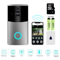 Item No.:WF-Doorbell productmaterial:ABS Productsize:151*64.5*41.5mm productweight:133.8g PowerInput:DC12V 1A Power:2.4W Standbycurrent:0.2A WorkingTemperature:-10℃-50℃ WorkingHumidity:≤90% Resolution:1280*720 memory:Built-in 8G zoom :digital zoom motion detecting range:3-5m Relay:Relay unlock signal circuit User number:Unlimited System:iOS and Android