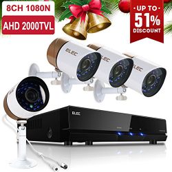 ELEC 8CH 1080N Security System AHD DVR 2000TVL 720P HD 4(Four) In/Outdoor Home Security Cameras No Hard Drive