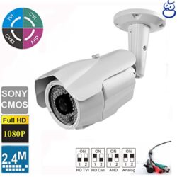 The R-Tech CA-TVI-IR160-4IN1 is a 4-in-1 camera with a physical controller to select between 1080p AHD, 1080p HDCVI, 1080p HDTVI, and 1200TVL analog / CVBS – allowing this camera