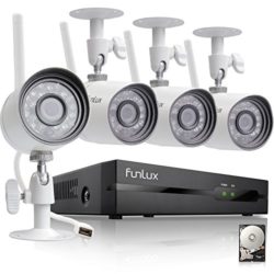 This Funlux 4 Channel Wireless NVR Security Camera System brings you a stable 24/7 monitoring of your house and frees you from the hassle of drilling holes and running