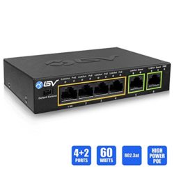 The POE-SW502 is an unmanaged 6-Port Power over Ethernet Switch with a total of 60 watts of PoE power. All ports run at 10/100Mbps and can provide up to