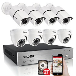 ZOSI 8CH FULL 1080P DVR w/ 8PCS 1080p Weatherproof Indoor outdoor Cameras Remote Access in Seconds with QR Code Scan Connect your smartphone or tablet to your system with