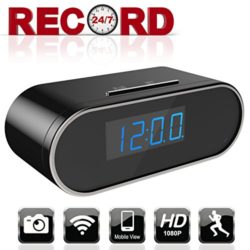 Aurola WiFi 1080P Hidden Camera Clock, Spy Camera, Nanny Camera with with Motion Detection Loop Recording for Home and Office Security Surveillance (Black)