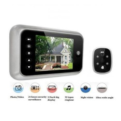 Features:Mini outdoor camera3.5-inch LCD color screenOV Industrial High Definition Color Image Sensor120 degree actual viewing angle24 hours monitoringSpecifications:Type: magic eyeMaterial: Zinc AlloyType: Digital DoorbellLCD screen: 3.5 inch Touch ScreenSensor:
