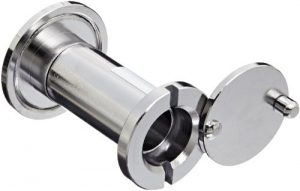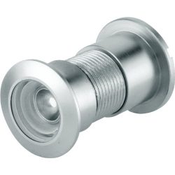 This door viewer is constructed from solid brass and comes plated in satin nickel. It features solid brass end caps and a glass lens. Provides 130 degrees of viewing