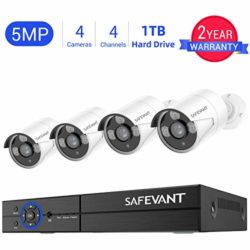 Wandwoo 5MP Home Security Camera System with 6*5MP Security Cameras, 65ft IR night vision, Motion Detection and Email Alerts DVR Features: 1.8CH TVI 5MP DVR 2.Video Output:HDMI&VGA 3. Support Android/IOS/PC Remote View( Free APP P6SPro on Mobile and CMS on Windows laptop/PC) 4. 1*SATA Port, Up to 6TB Supported(3.5Inch,SATA Interface available) 5.2*USB2.0 Port 6.Support Video Preview/Recording/Playback/USB Backup 7. Power Supply Input: DC12V-2A 8.Video Compression:Advanced H.265 Camera Features: 1. Image Sensor: New Progressive 1/4” Color CMOS 2. Video Resolution: 2592*1920P 3. Lens: 3.6mm 4.Infrared LEDs:18 4. Night Vision: 65 Feet (20m) 6. Weatherproof: IP66 Indoor/Outdoor 7. Power Supply Input: DC12V-2A for 6 Cameras 8. Power Dissipation: Q5W 2 Year Warranty When Purchased from Wandwoo Thanks for shopping from us. Any problems during using our device, pls do not hesitate to contact us by email (wandwoo@yaboolu.com) or Toll Free 1-866-599-0526 Product Features 🎥【Wired security camera system】5MP 8 channel security camera system with 1TB