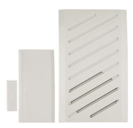 Features. Entrance Alert Chime With Magnetic Door Contacts Plug In Chime Receiver Installs Easily In Minutes. No Wiring Necessary.. Entry Alert Transmitter Has Up to 150 ft. Operating Range.