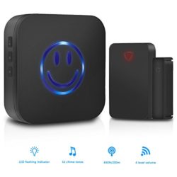 Specifications:Maximum 650 feet or 200 meters operating range in open area Up to 52 unique ringtones30-110 dB Volume rangeLED indicatorsOperating Voltage: 3 V DC (1 X 12V23A Battery)Working Frequency: