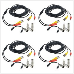 Flashmen 25 ft 4 Pack BNC Video Power Cable Security Camera Wire Cord for CCTV DVR Surveillance System One Cable with 2x BNC to RCA Connectors 2x BNC to BNC Connectors 1x DC Plug Adapter