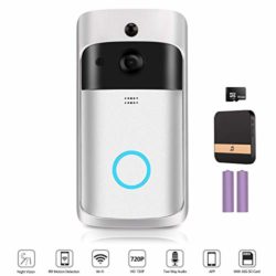 Video Doorbell,16GB SD Card and 2 Battery Wireless Door Bell Security Smart Camera with WiFi 2 Audio Talk 720p HD Wide Angle Monitor Night-Vision PIR Motion Detection APP Control Free Indoor Chime