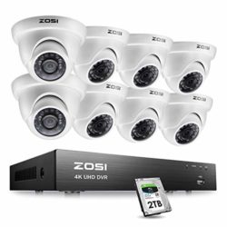 ZOSI 8CH Ultra 4K High Definition DVR with 8PCS 4K(8. 0MP) Cameras ***One 4K Camera= Four 1080P Cameras 24pcs Infrared LEDs enable long night vision distance up to 65ft.