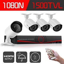 IHOMEGUARD 4CH 1080N Video Surveillance DVR and 4 x 1500 TVL 720P HD Outdoor Bullet Cameras Free Advanced App *Live view and playback on your smartphone Download XMEye on