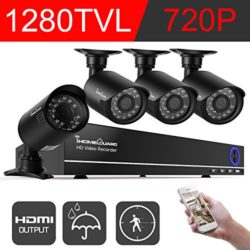 IHOMEGUARD 4CH 1080N Video Surveillance DVR and 4x 1280TVL 720P HD Outdoor Bullet Cameras Free Advanced App *Live view and playback on your smartphone Download XMEye on APP Store