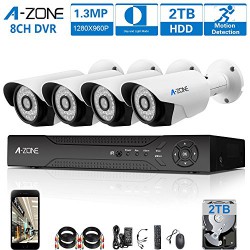 A-ZONE AHD surveillance 8 Channel DVR system with 4* 960P 1.3 MP Full HD cameras, 100ft IR night vision, USB backup, 4 channel playback. Feature of Home Security Camera