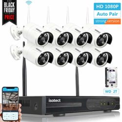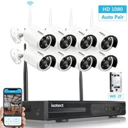 Isotect HD 1080P Video Surveillance NVR with 2TB Hard Drive 8 x 1080P Bullet Cameras Free From Complex Wiring: — This wireless 1080P HD Security NVR System with 12.5″