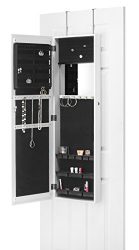 Keep your jewelry organized and protected with Whitmor’s Over the Door Jewelry Armoire. Stylish and functional, the outer full-length mirror lets you check your reflection before leaving the house,