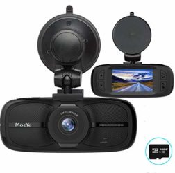 Moeye Dash Cam, 720P HD Dashboard Camera with 2.7″ LCD Screen, 16GB TF Card, Night Vision, Loop Recording – Black