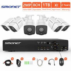 SMONET AHD Home Security Camera System, 8CH 1080P AHD DVR+6PCS 1080P Security Cameras+Pre-installed 1TB Hard Drive, 65ft Super Night Vision, Plug and Play, Motion Detection and Email Alerts AHD