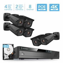 Amcrest 4K Security Camera System w/ 4K 8CH PoE NVR, 6 x 4K IP67 Weatherproof Metal Bullet POE IP Cameras, Pre-Installed 2TB Hard Drive, NV4108E-2496EB28M4-2496EB40M2-2TB (Black)