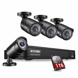 ZOSI 8 CH PoE Security Camera System 1080p, 8 Channel NVR Recorder with (4) 2.0 Megapixel 1920x1080p Surveillance Bullet IP Camera Outdoor/Indoor,100ft Long Night Vision (1TB Hard Drive Built-in)