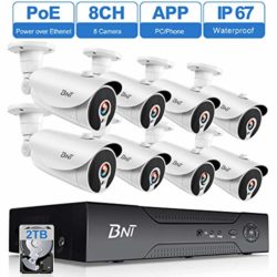 BNT 1080P PoE Security Camera System, 8CH NVR 8 Camera, 7/24 Video Recording Onvif, Free APP Remote Monitor, Customizable Motion Detect, IP67 Waterproof Indoor Outdoor,2TB Hard Drive