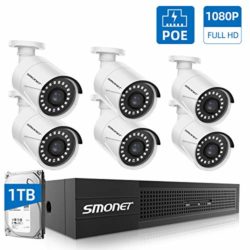 PoE Security Camera System,SMONET 8 Channel 1080P PoE NVR Surveillance System with 1TB Hard Drive, 6X Wired Onvif 1080P Outdoor IP Cameras IP66,NVR Kits Plug and Play,7/24 Recording,Remote Monitoring