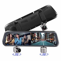 Product Features [DUAL LENS 350°ROTATING CAMERA] 1080P full HD front and 720P cabin in-car mirror dash camera can record the road and inside the car simultaneously. Dual lens 350°