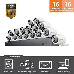 Keep your house or business secure with the Samsung Wisenet SDH-C851000-16 4 Megapixel Super HD Video Security System, featuring a 16-channel DVR and 16 bullet cameras. The bullet shaped