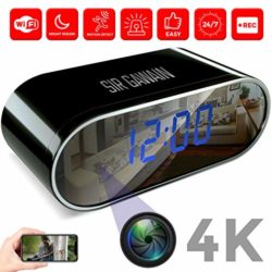 SIRGAWAIN Hidden Spy Camera Alarm Clock WiFi | 4K Video | Nanny Cam | Home Surveillance | Small Personal Security | Night Vision and Motion Detection | Wide 150° Viewing Angle