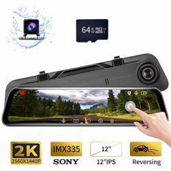 TOGUARD Backup Camera 12″ Mirror Dash Cam Touch Screen Voice Command 2K Dual Dash Camera for Cars Streaming Video Rear View Camera with 1080P Waterproof Rear Camera Features: 12