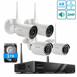 ONWOTE Expandable 1080P HD Wireless Security Camera System with Audio, 8CH NVR 1TB HDD, 2Pcs 180° Pan 55° Tilt 4X Optical Zoom WiFi Audio Cameras, 100ft-130ft IR Night, Add