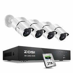 ZOSI 8CH Ultra 4K High Definition DVR w/ 4PCS 4K(8. 0MP) Cameras One 4K Camera= Four 1080P Cameras 36pcs Infrared LEDs enable long night vision distance up to 100ft.