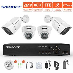 5MP 8CH PoE NVR Security Camera System, SMONET 4pcs Wired Outdoor Indoor Dome IP Cameras,8-Channel Video Surveillance System(1TB Hard Drive),24/7 Recording for NVR Kits,Super Night Vision,P2P,Free APP Product Features