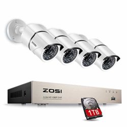 ZOSI 8CH 1080P DVR w/ 4Pcs 1080P weatherproof cameras with 1TB HDD Remote access in Seconds with QR Code scan* live view & playback on your smartphone* One button