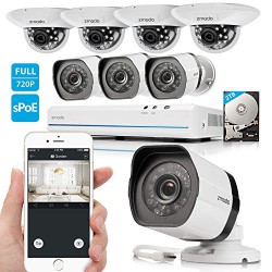 Package Includes 1) 8 Channel Security NVR 1) 19V 1.5A sPoE Repeater 1) 1TB Hard Drive (Pre-installed in the NVR) 4) Zmodo 1080P IP Network Camera 1) 12V 2A